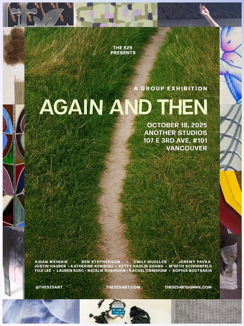The act of repetition, whether it’s physical, emotional, natural or unnatural, inherently results in transformation. With a specific curiosity for this phenomena, curators Delaney Yvonne and Rowen Dinsmore are united by a fascination with the idea of transformation caused through repetition. Again & Then explores how recurring forms, gestures, or concepts can evolve into something unexpected or predictable over time.